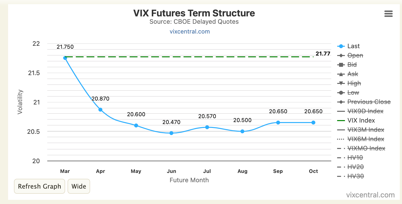 Уналтын дараа хэлэлмэгц чанар (VIX) бага зэрэг зөөлөрч байна. Гэсэн хэдий ч VIX-ийн түвшин S&P 500-д өдөрт мэдэгдэхүйц хэмжээний хөдөлгөөн гарахыг хүлээж байгааг харуулж байна.