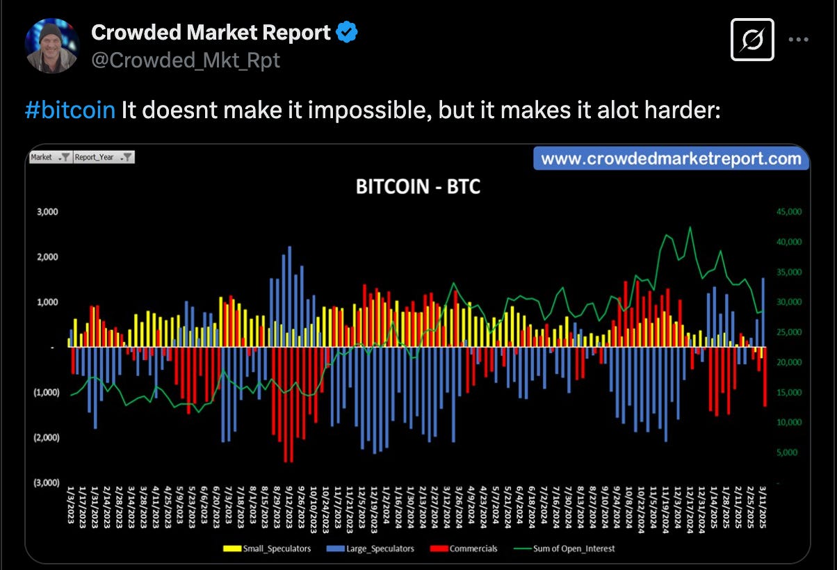 Crowded market report-оос small speculators, commercials зэрэг оролцогчид биткойн авахгүй байгааг харуулсан чарт хуваалцсан байна.