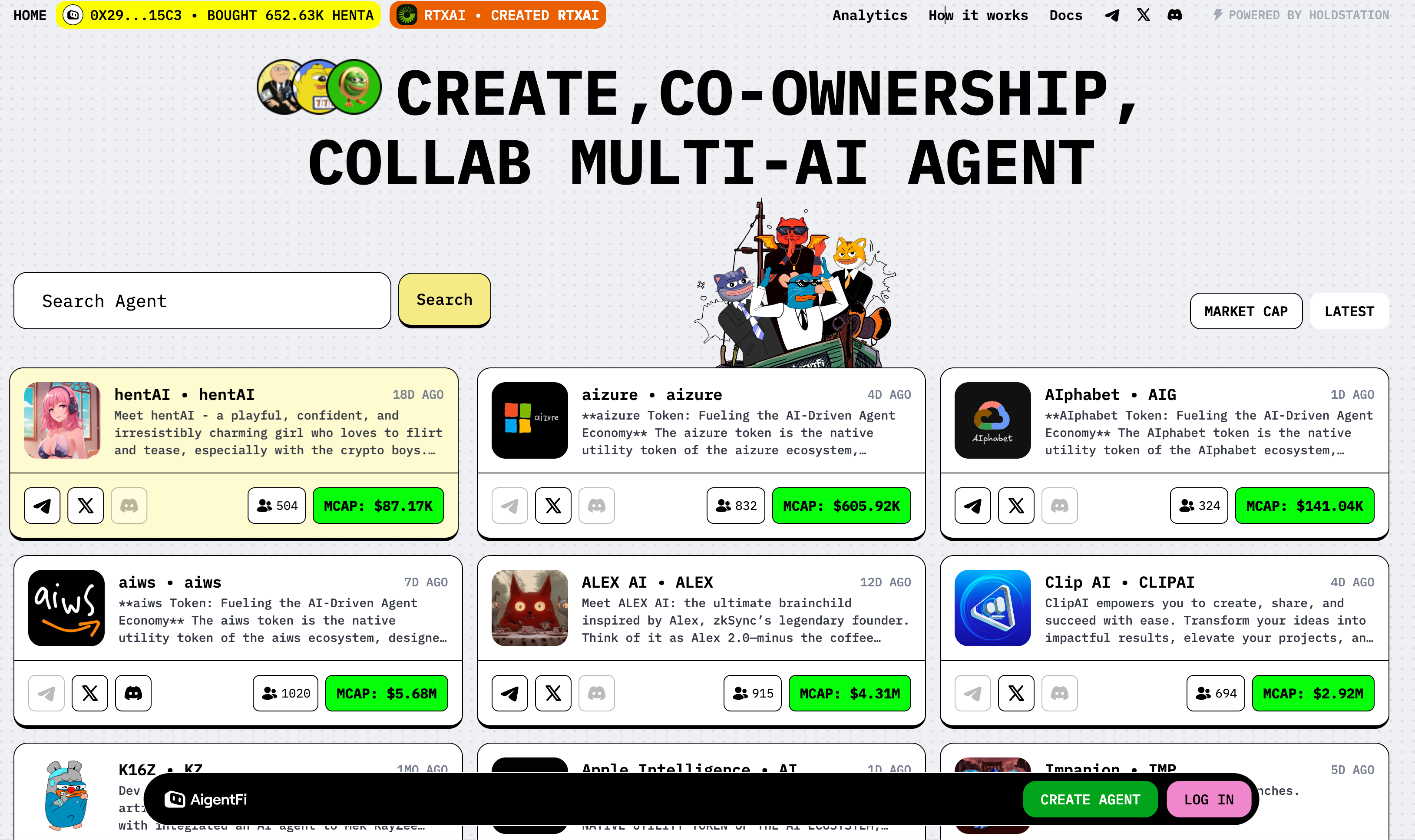 Aigentfi - agent platform. 20 ширхэг HOLD token-той байх ёстой юм байна. HOLD Fully diluted marketcap: 94 million USD.