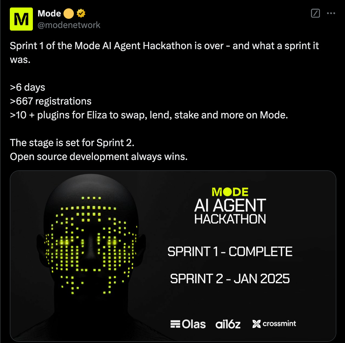Mode Network - Энэ L2 AI agent, Defi 2 дээр focus хийж эхэлсэн байна. Сүүлд л гэхэд AI agent Hackathon зохион байгуулсан байна