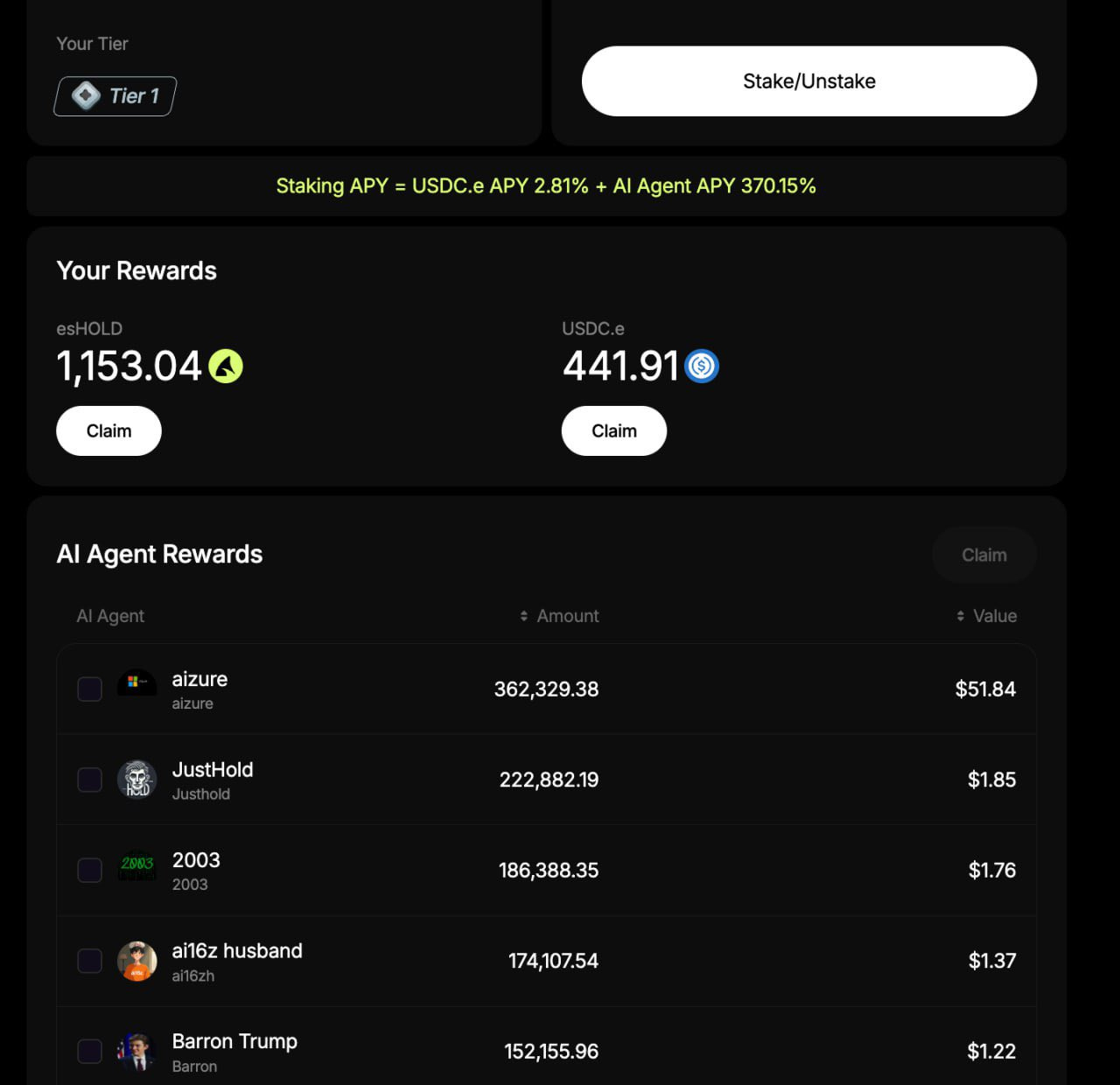HOLD token stake хийгээд нөгөө олон AI зоосноосоо урамшуулал авчих юм байна