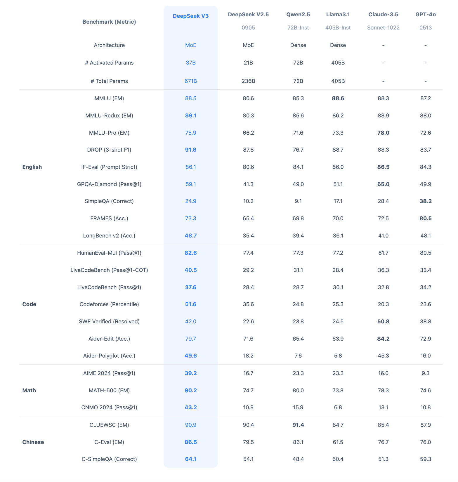 Deepseek нь сүүлд Хятадаас гарсан LLM юм. Маш олон үзүүлэлтээрээ одоо зах зээл дээр байгаа LLM-ээс илүү бөгөөд хамгийн гол нь API нь 94,81% хямд. 2025 онд Хятадаас гарах технологийн шийдлүүд зах зээлийг гайхшруулах төлөвтэй байна.
