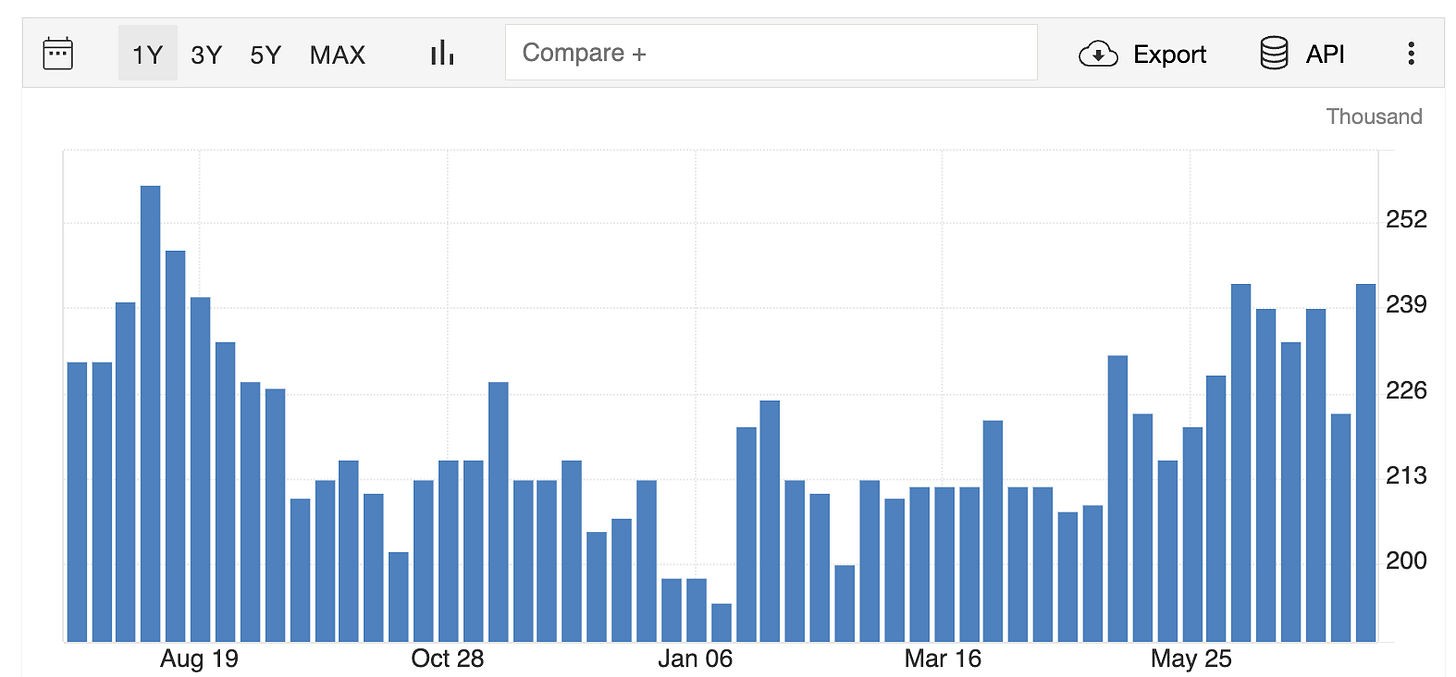 Initial claims өмнөх сараас өсөлттэй 6 сарын үзүүлэлттэй адил гарсан байна. Он гарснаас хойш тренд бол өсөлттэй харагдана.