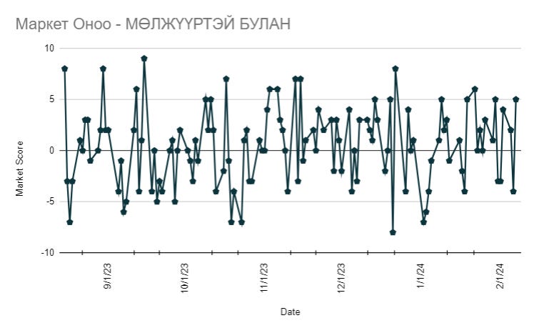 Marкет оноо: 5 / өчигдөр -4 байсан/