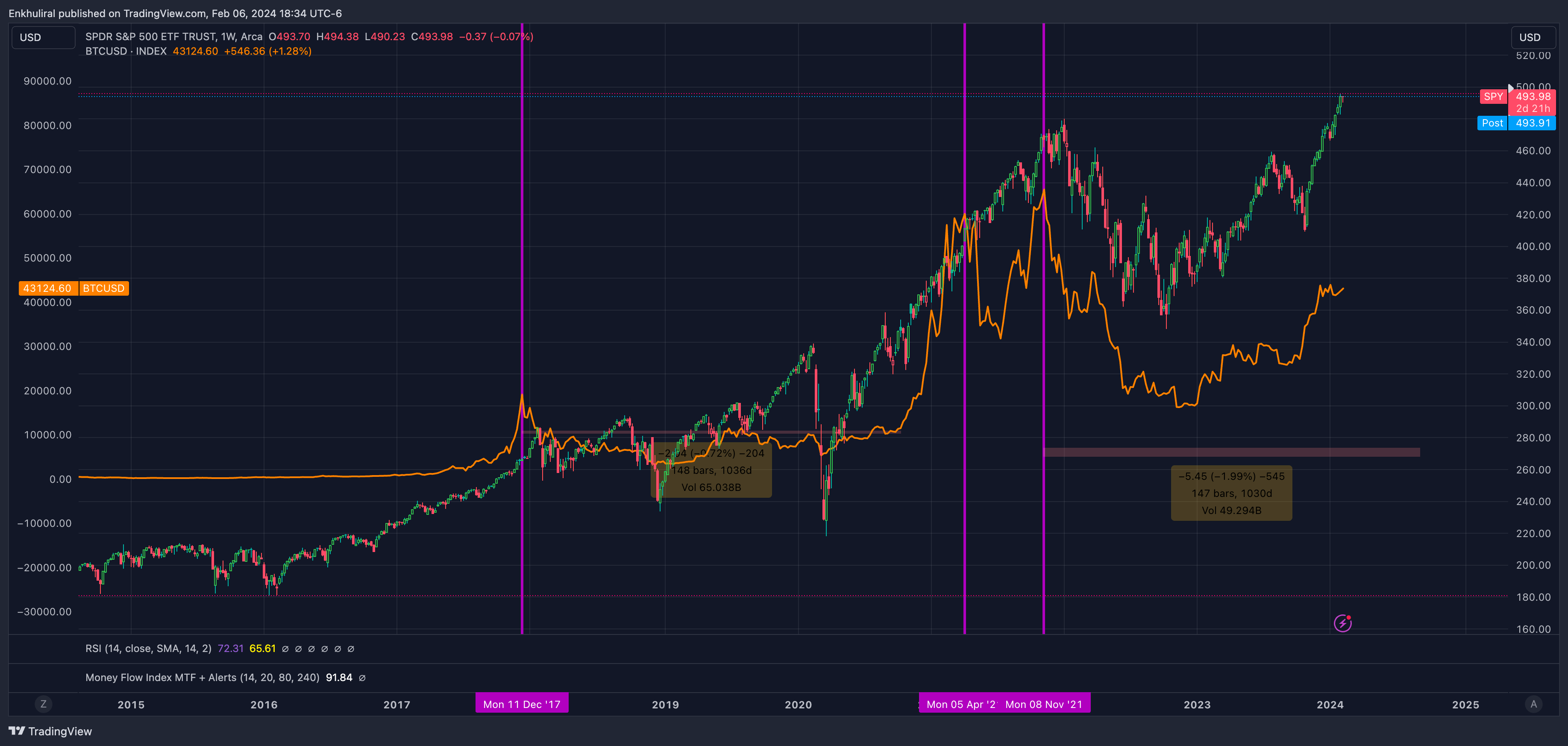 Гэхдээ өмнөхийг бүрэн давтах алба үгүй бөгөөд Биткойн ETF-ээс болоод Биткойн энэ удаа хувьцааны зах зээлтэй илүү хамааралтай байх болов уу гэж би бодоод байгаа юм.