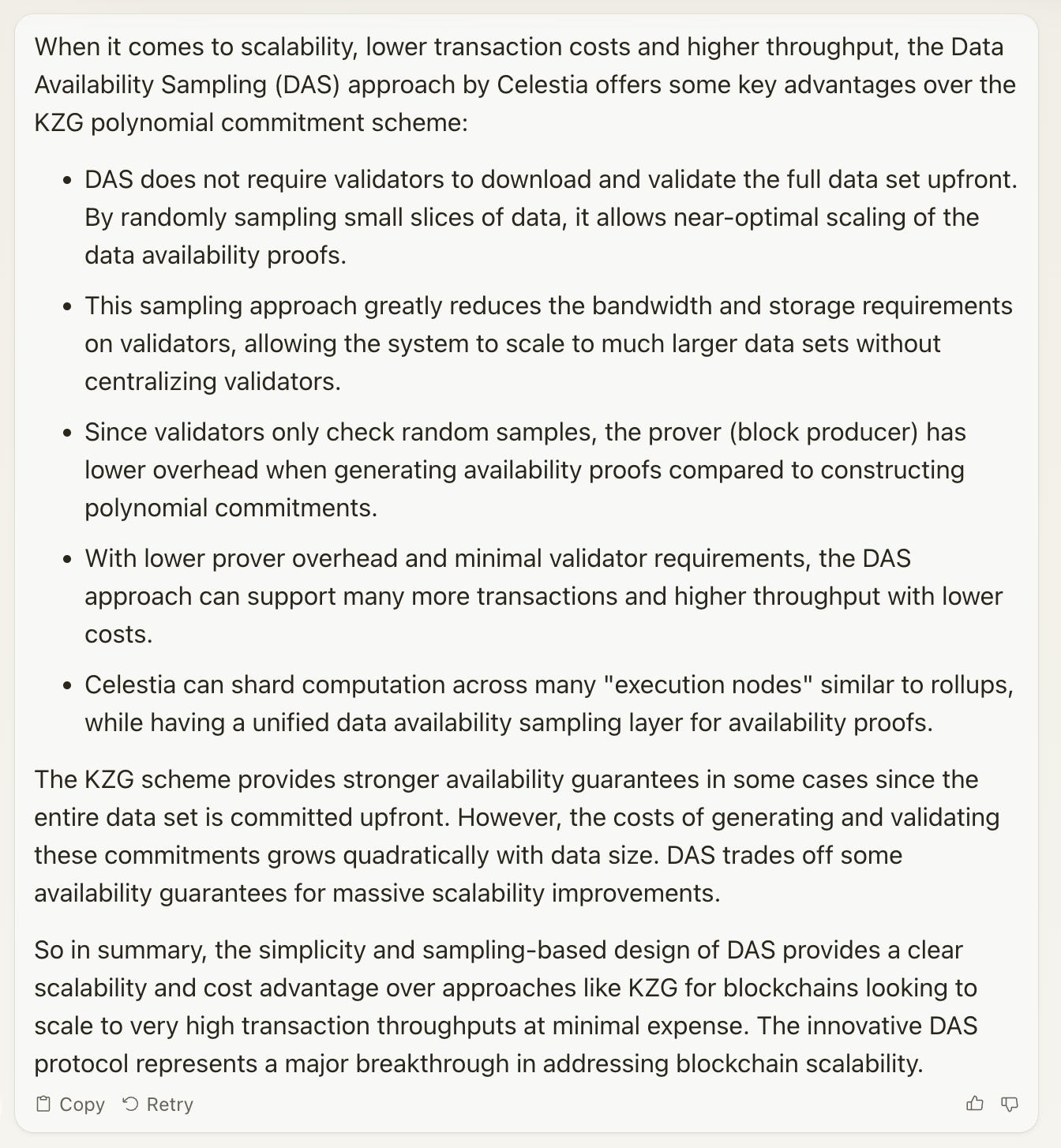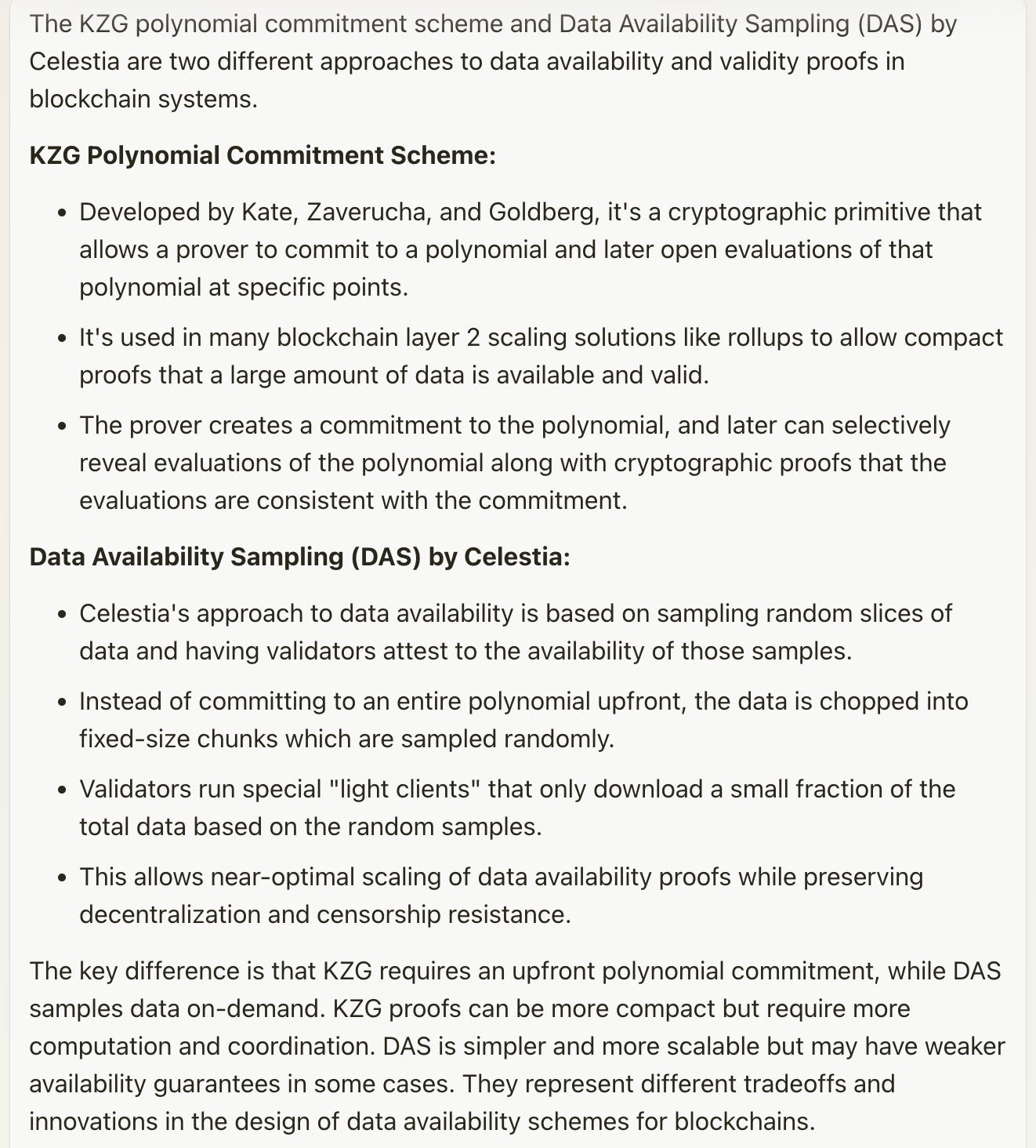 Danksharding бэлэн боллоо гэхэд Celestia-ээс хэрхэн ялгарах вэ гэж бодов. Асуултын хариултыг хиймэл оюун ухаанаас асуувал Celestia давуу болж таарч байна.