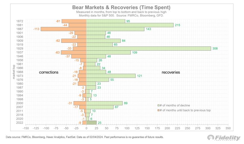 Уналттай зах зээл дээр ёроолдоо очиход, ёроолоосоо буцаад оргилдоо хүрэхэд шаардсан хугацаа сараар. Уналт 9 сар үргэлжилсан бол буцаад оргил дээрээ ирэхэд 25 сар шаардсан байна.
