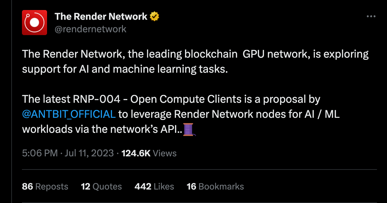 $RNDR дээр хиймэл оюун ухааны зах зээл дээр өөрийн хэрэглээгээ олж чадах болов уу гэдэг хүлээлт зах зээл дээр өндөр байсан ч хүлээлтэд хүрээгүй билээ. Тэгвэл 7 сард гарсан энэхүү мэдэгдлээрээ алдаагаа засах гэж оролдож байна