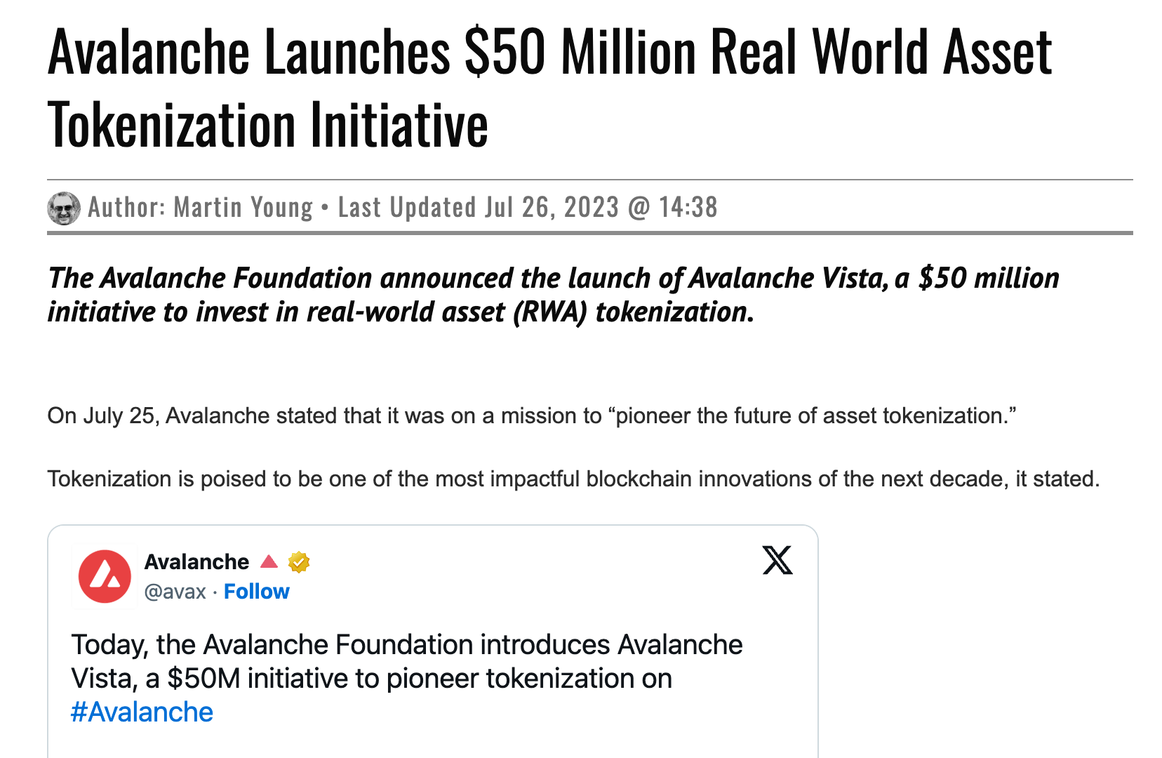 Энэ 7 сард гарсан зарлал. $AVAX зоосны хувьд хамгийн өндөр ханшнаасаа 92 хувь унасан байна.