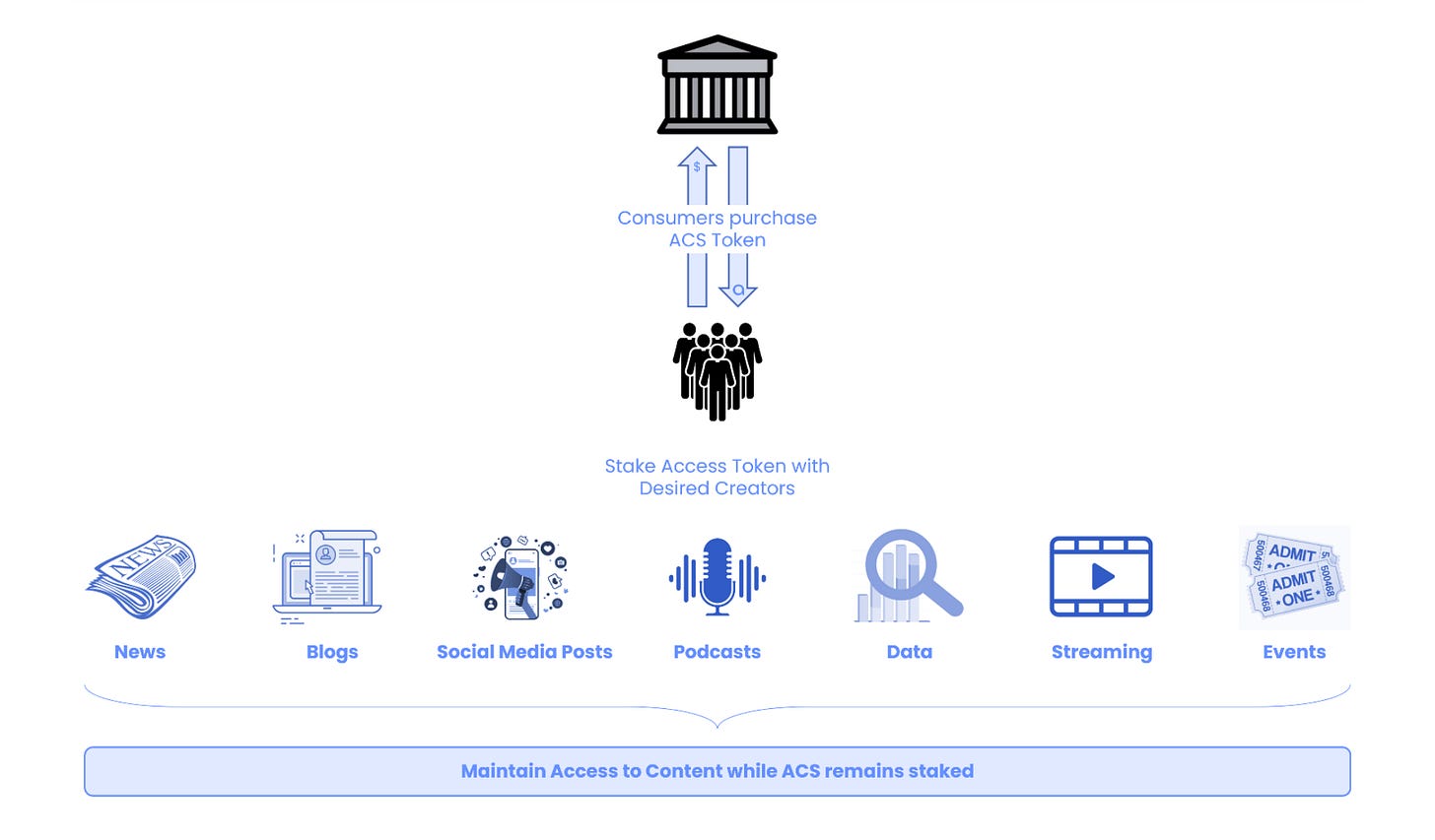 Токен ашиглаж төлбөртэй контент үзэх боломжтой болгодог ийм төсөл гарсан нь анхаарал татав. Санаа нь бол их энгийн ACS гэдэг зоосоо хүссэн унших, сонсох эсхүл үзэх дуртай сайттайгаа холбож stake хийгээд эрхээ авна.