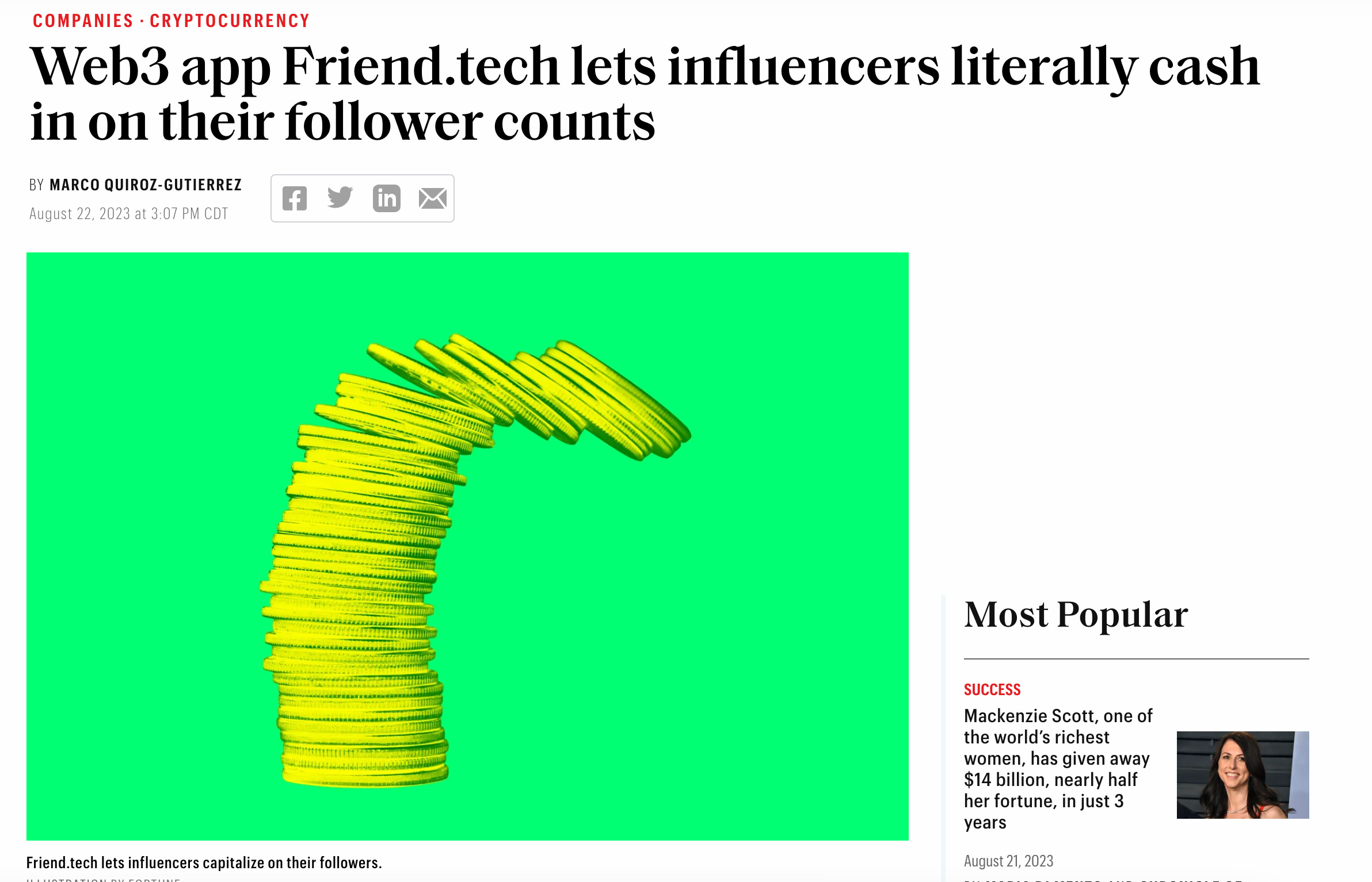 Шинээр гарсан social media app FriendTech хүмүүсийн анхаарлыг татав. Заавал урилгатай ордог бөгөөд influencer-үүд өөрсдийн гэсэн private өрөөг нээгээд тэнд нь хүмүүс орохын тулд influencer-ийн гаргасан токеныг худалдаж авч байж ордог юм байна. Үнэнч фенүүдээ саах хялбар арга л юм даа 🫢