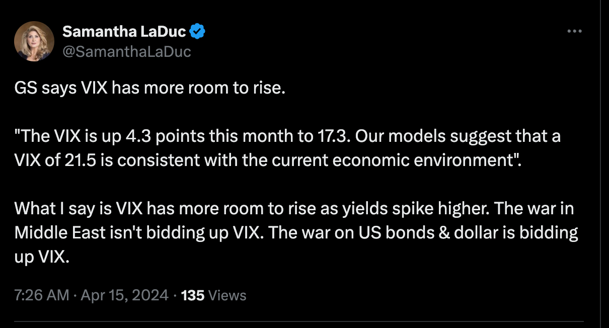 Иран, Израйлийн мөргөлдөөн бол маркет дээр хүн бүрийн мэдэж байсан асуудал байсан. Би тав дахь өдрийн уналтыг өөр шалтгаанаар болсон гэж үзэж байгаа. Samantha VIX өссөн шалтгааныг ийнхүү тайлбарлаж байна.