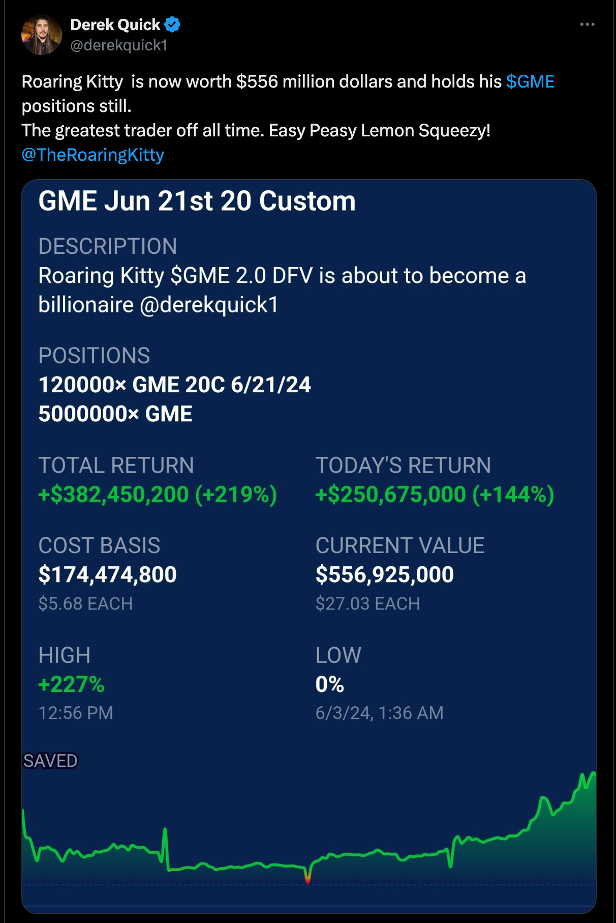 Roaring Kitty GME дээр 382 сая доллар хийсэн байна: