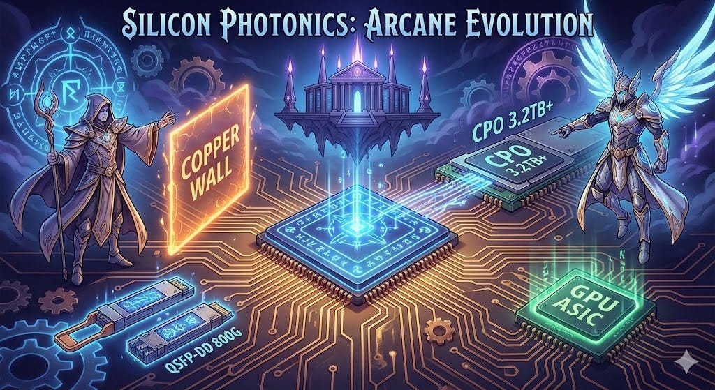 Цахиурын Фотоник (Silicon Photonics) нь орчин үеийн хиймэл оюун ухаан болон хэт том өгөгдлийн төвүүдийн (hyperscale data centers) чухал дэд бүтэц болон хувираад байгаа бөгөөд энэ нь уламжлалт зэс дамжуулагчийн эрчим хүч, зай, болон өгөгдөл дамжуулах нягтралын хязгаарлалт буюу "зэсийн хана"-ыг даван туулах зайлшгүй шаардлагаас үүдэлтэй юм. Одоогоор зах зээлд 800G болон шинээр гарч буй 1.6T хурдтай ажилладаг залгагддаг оптик дамжуулагчууд (OSFP болон QSFP-DD загварууд) ноёрхож байгаа боловч технологи нь Хамтран Савласан Оптик (Co-Packaged Optics - CPO) болон Шугаман Хөдөлгүүртэй Залгагддаг Оптик (Linear Drive Pluggable Optics - LPO) зэрэг дараагийн үеийн нэгдсэн шийдлүүд рүү хурдацтай шилжиж байна. Эдгээр ирээдүйн дэвшилтэт шийдлүүд нь оптик хөдөлгүүрийг GPU эсвэл сүлжээний шилжүүлэгч ASIC чиптэй нэг суурь хавтан дээр шууд байрлуулснаар эрчим хүчний зарцуулалтыг 30-50% бууруулж, хоцролтыг багасгахын зэрэгцээ ирээдүйн хиймэл оюун ухааны кластеруудад шаардлагатай 3.2TB+ зурвасын өргөнийг бий болгох боломжийг олгох юм.