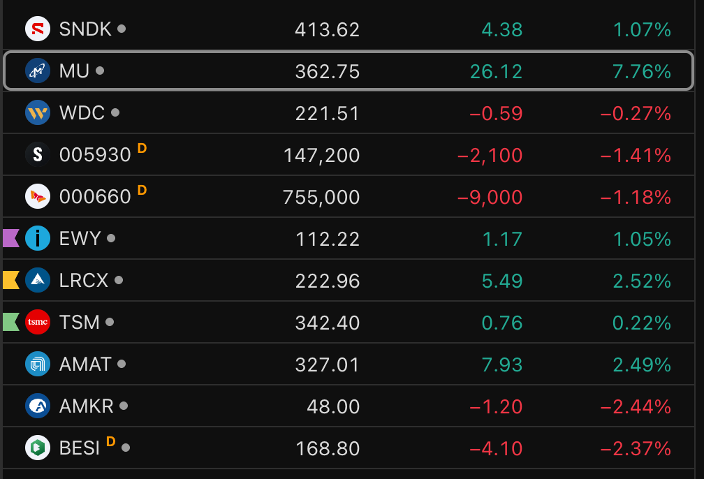 Хамгийн түгээмэл яригдаад байгаа нь SNDK 0.00%↑ MU 0.00%↑ WDC 0.00%↑