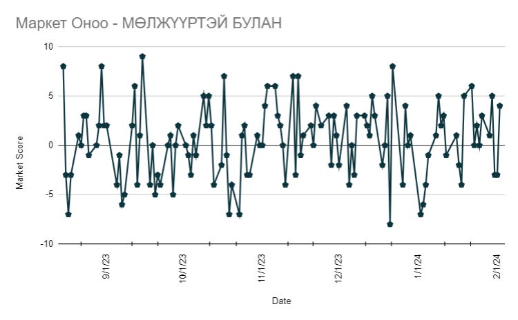 Marкет оноо: 4 / өчигдөр -3 байсан/