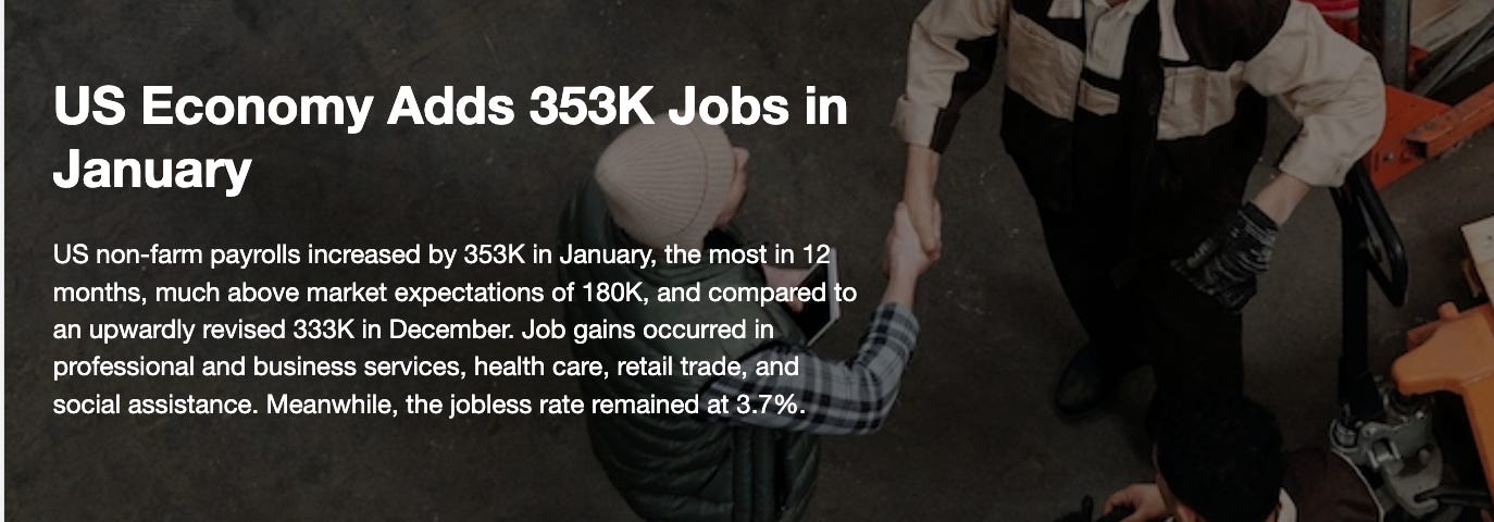 Ажилгүйдэл үргэлжлүүлэн бага гарлаа. 3 сард бодлогын хүүг бууруулах магадлалыг энэ бууруулах учиртай. Powell яриан дээрээ эдийн засаг хүчтэй, ажилгүйдэл бага байгаа дээр ажлаа гүйцээх боломж байна гэж хэлснийг бүү мартаарай.