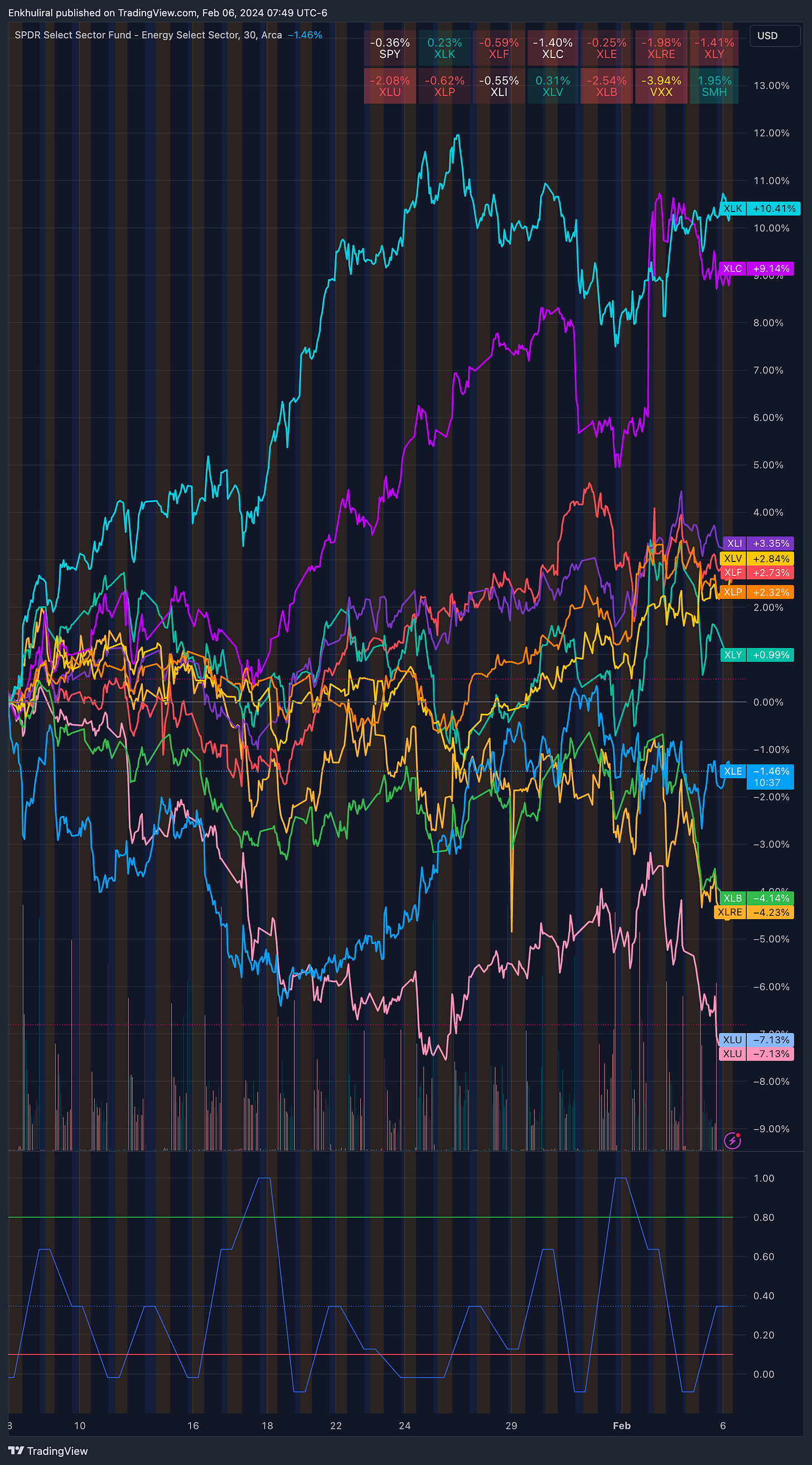 Эдийн засгийн циклээс хамгийн хамаардаг салбарууд болох Utilities, Energy, Materials зэрэг секторууд хамгийн уналттай байна.