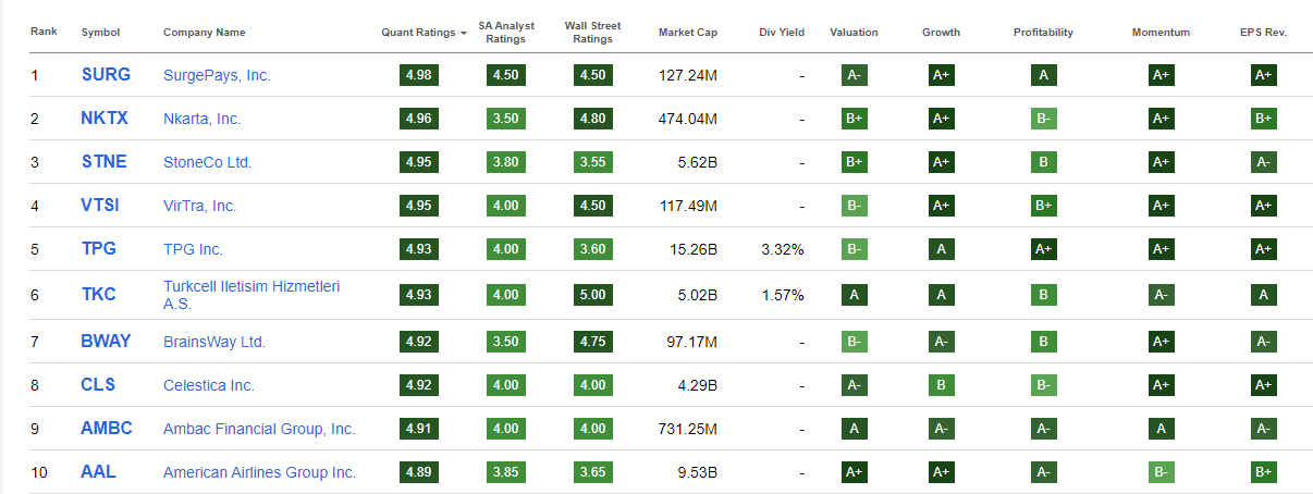 Хамгийн сайн Quant rating-тэй 10 хувьцаа: