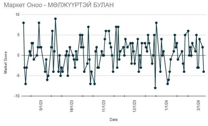 Marкет оноо: -4 / өчигдөр 2 байсан/