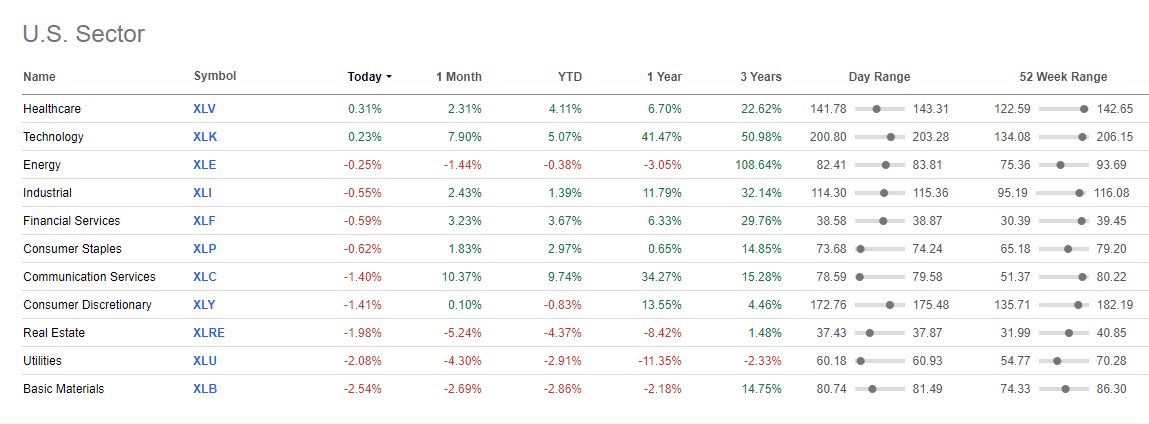 Healthcare sector 0.31% usulttei, Basic materials sector 2.54% unalt uzuulsen bna.