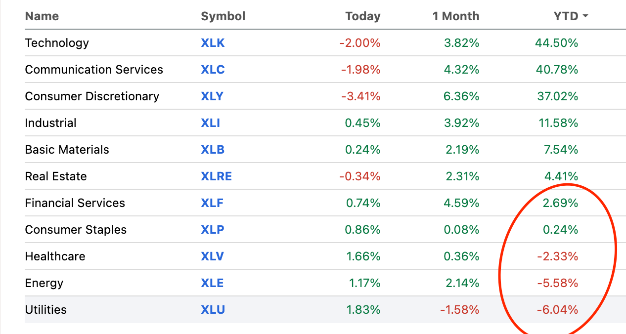 Он гарснаас хойшхи сектор үзүүлэлтийг харвал хамгийн их өсөлт үзүүлсэн Технологийн сектороос Energy, Utilities, Healthcare, Staples, Financial services-руу мөнгөн урсгал чиглэнэ гэж таамаглаж байна.