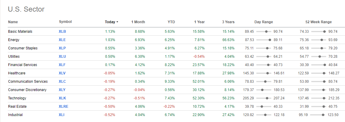Basic Materials sector 1.13% usulttei, Industrial sector 0.52% unalt uzuulsen.