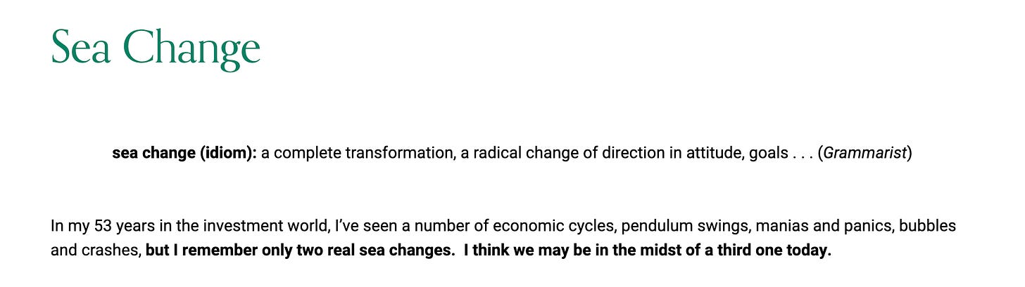 Сонирхолтой нь маркет одоогоор өсөлттэй байна. Энэ бага цаг дээр маркет унана гэдэг таамгийг дахин бататгаж байгаа бол том зургаараа Sea change буюу маш бага зээлийн хүүтэй эрэн үе төгсгөл болсон байх боломжтойг харуулж байна.