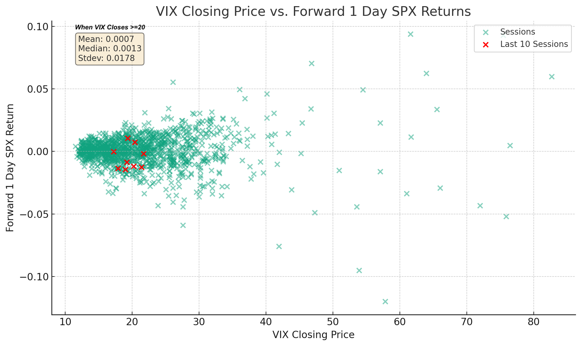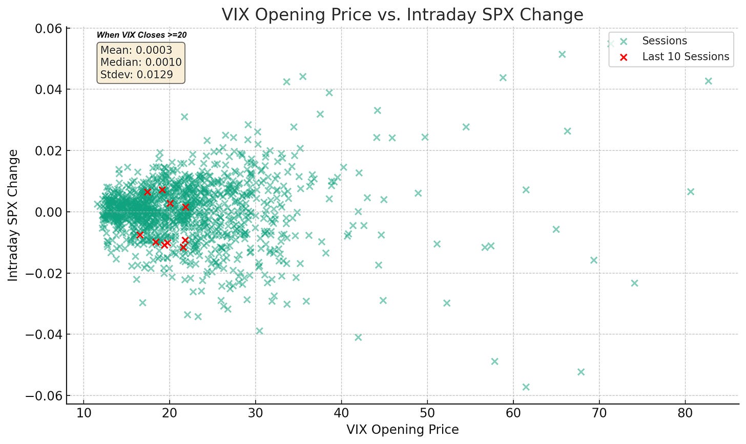 Тэгвэл VIX хэмжээ зах зээлийн гүйцэтгэл хоорондын хамаарлыг доорх графикаас харж болно. Юу ажиглагдаж байна гэхээр VIX өндөр үед унасан ч хүчтэй унана, өссөн ч хүчтэй өсдөг байх нь.