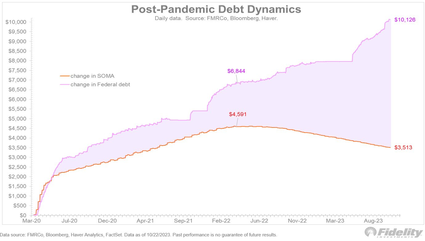 Ковидын дараа санхүүгийн ертөнцөд болсон том өөрчлөлтийг доорх зургаас харж болно. Төсвийн алдагдал өсч, төв банкны худалдан авалт хийх биш эсгэрээрээ заралт хийдэг болсныг харж болно.