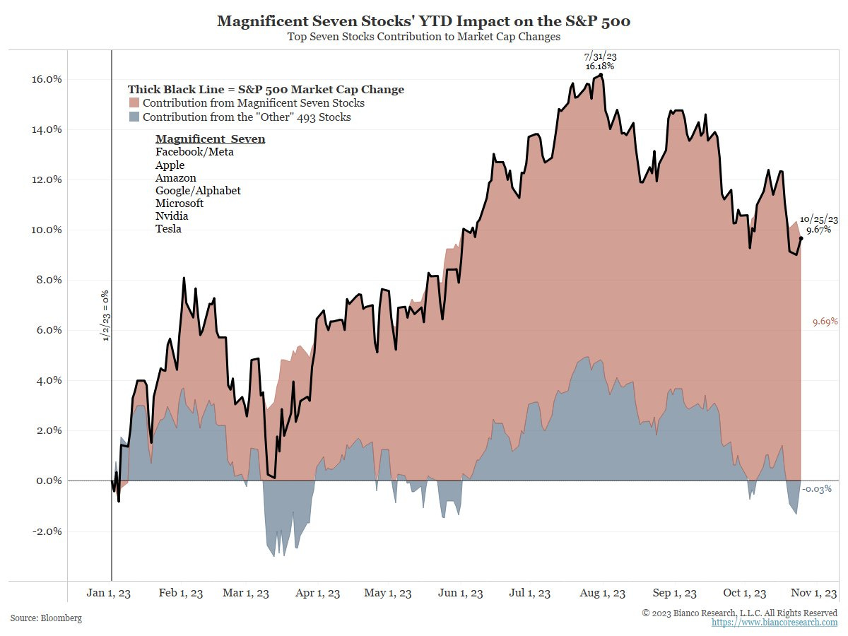 Magnificient 7 гэгдэх болсон 7 хувьцааг хасвал маркет он гарснаас хойш өсөлтгүй байна.