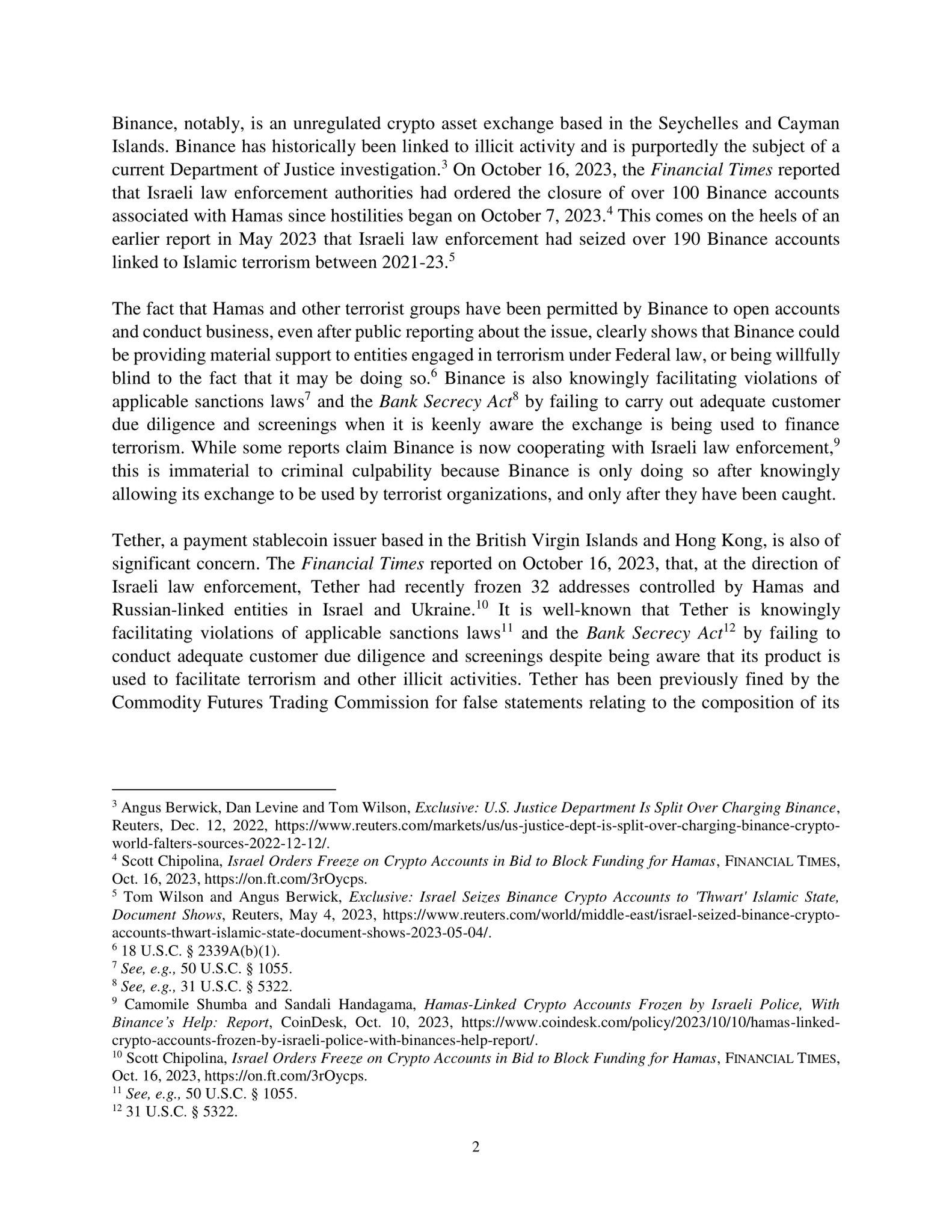 Бинанс болон Тетерийг тероризм санхүүжилттэй холбоотой шалга л гээд байна: