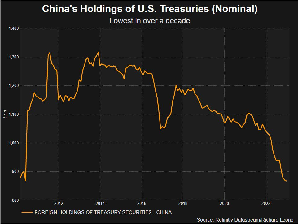 Хятадын барьдаг бондын хэмжээ унав. Nominal гэдгээс харвал Хятадууд бонд зарсан гэхээсээ бондын ханш бууралттай уналт болохыг харж болно.