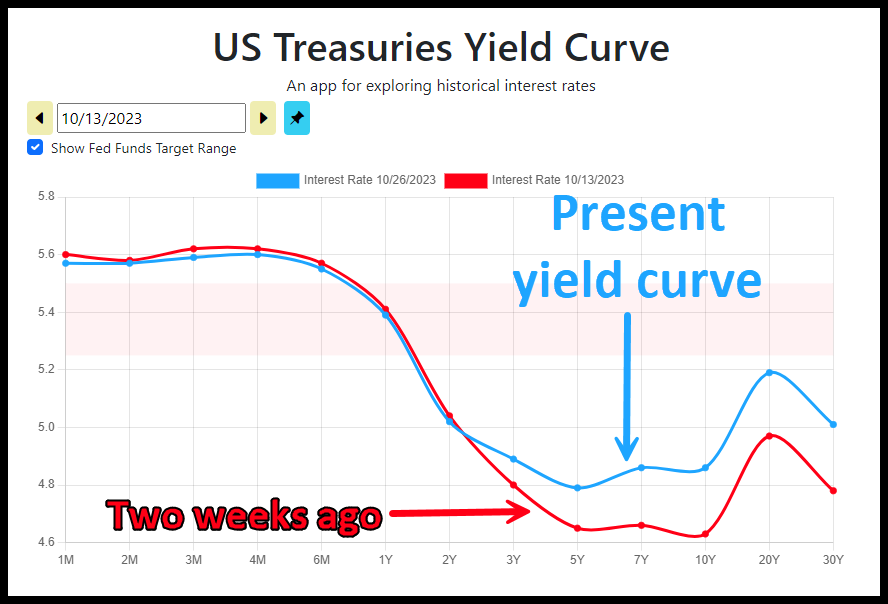 Yield curve хэрхэн өөрчлөгдөж байгааг доорх зургаас харж болно. Буцаад хавтгай хэлбэртэй болж эхлэхийг steepening гэдэг бөгөөд богино хугацаатай бондын хүү хэвэндээ байхад урт хугацаатай бондын хүү доорх шиг өсөхийг “Bear Steepener” гэдэг байна.