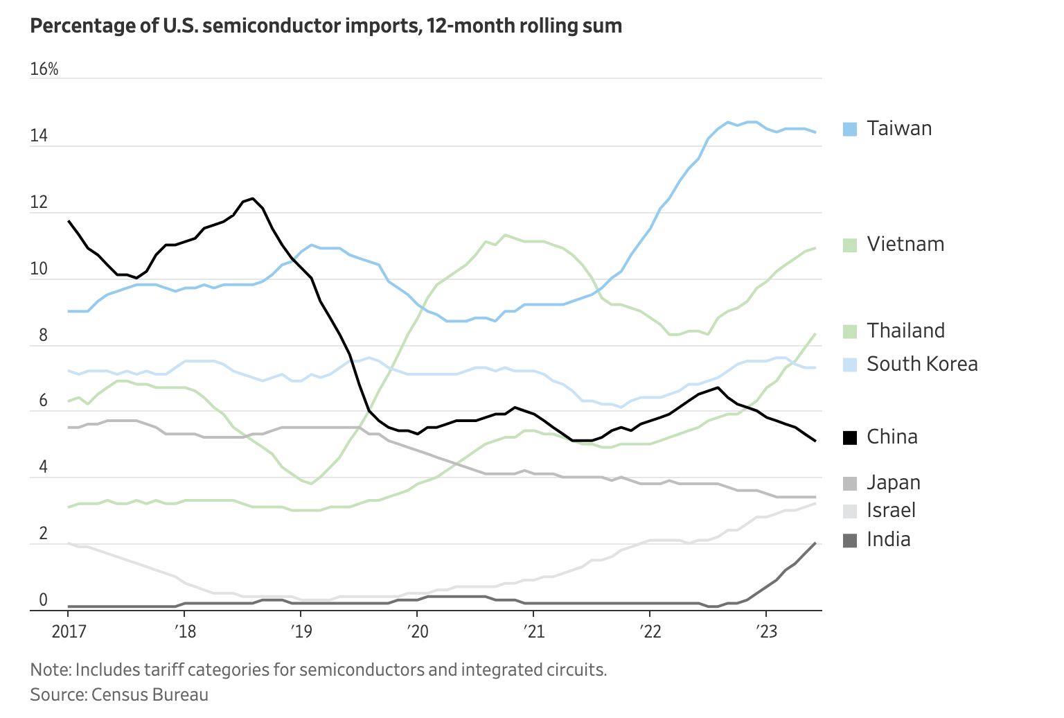 Хятад Америк хоёрын гадаад харилцаа дордож байгааг импортын датагаар WSJ харуулсан байна.