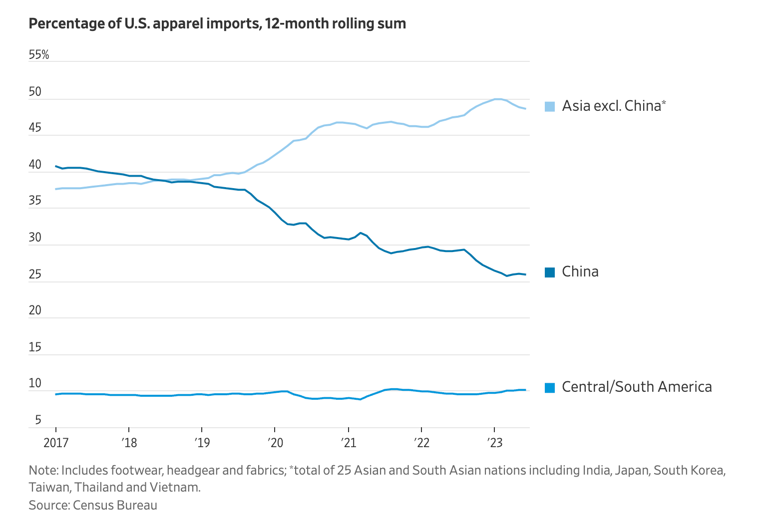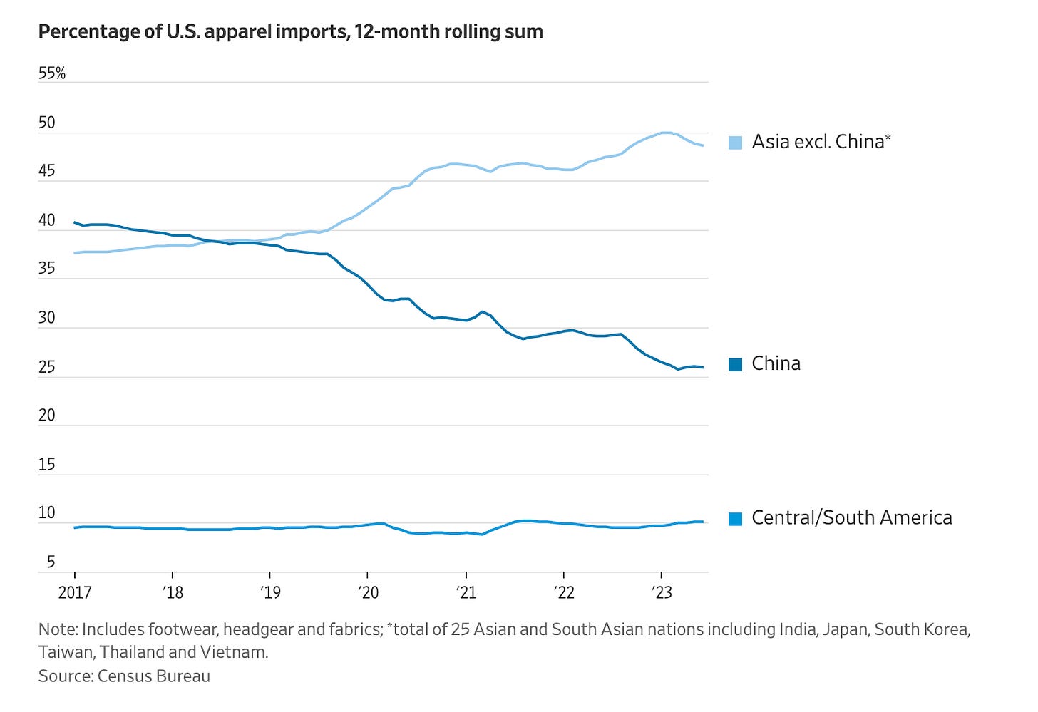 Хувцасны импортыг улсаар харвал. Хятадыг тооцохгүй бол Азийн орнуудаас