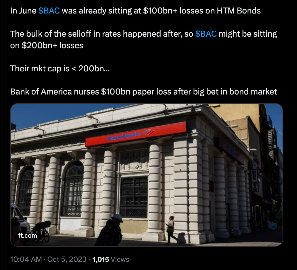Bank of America-ийн paper loss буюу баланс дээр нь байгаа бондын алдагдал 200 тэрбум ам доллар хүрсэн байж магад гэсэн хардлага байна: