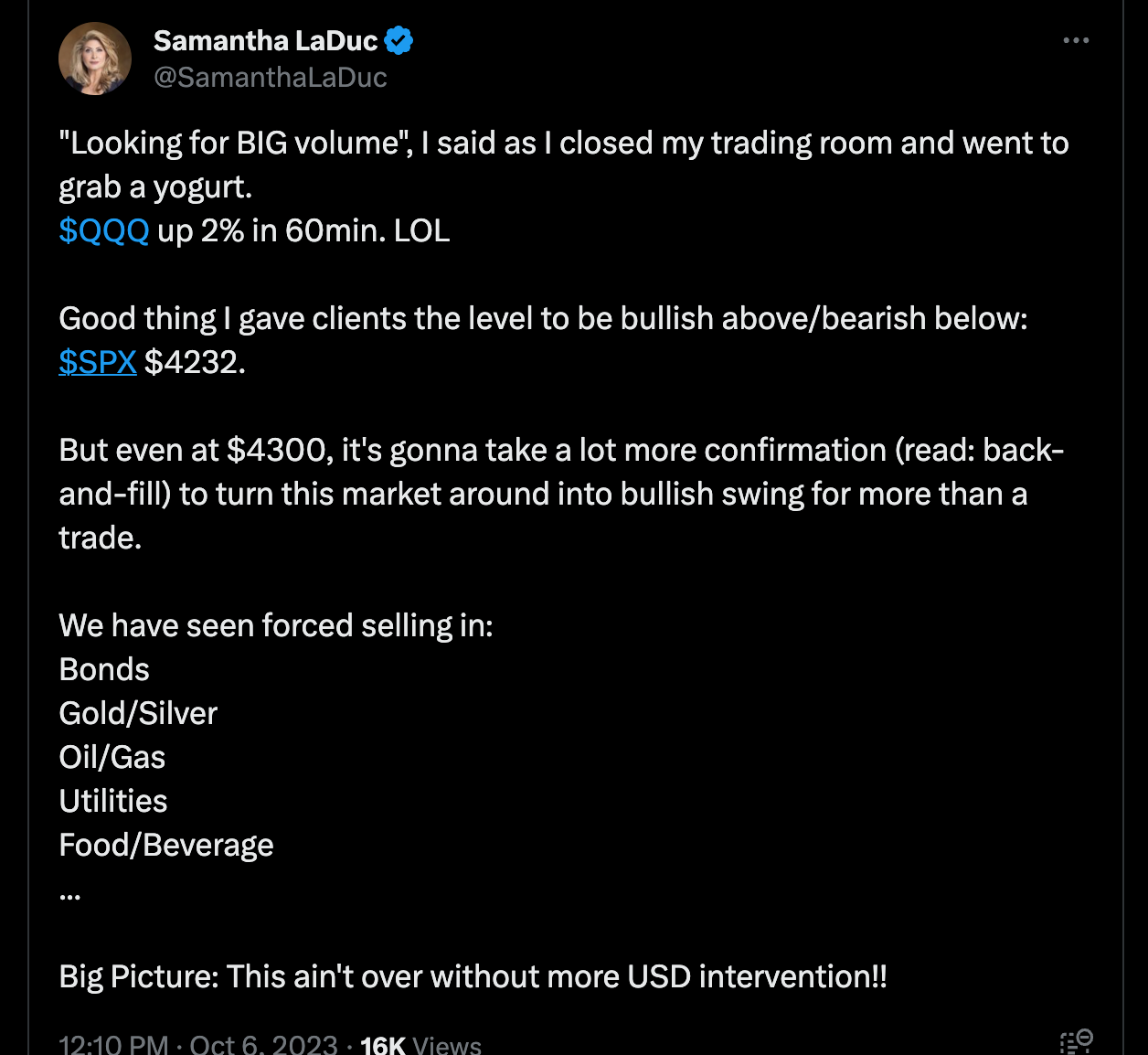 Дээрхийг би тайлбарлавал хэдий маркет өнөөдөр өссөн ч гэсэн төв банк долларын хүчийг сулруулахгүй л бол энэ уналт үргэлжлэнэ гэж Саманта үзэж байгаа юм байна.