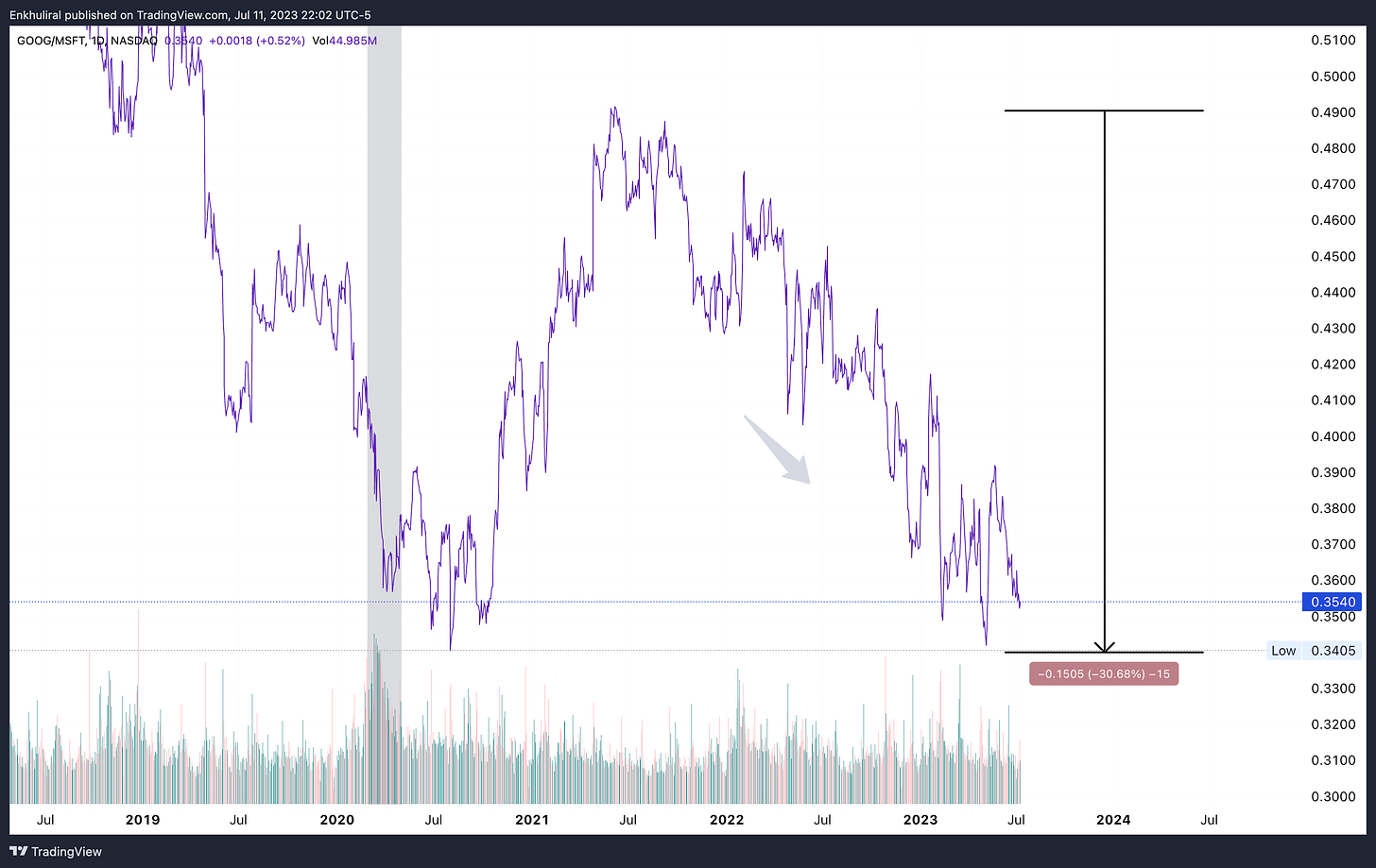 GOOG 0.00%↑ $MSFT-тэй харьцуулбал 2021 оноос хойш 30% унасныг харж болно: