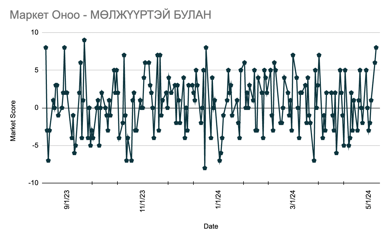 Маркет ямар эрчимтэй өссөнийг Маркет оноо 8 болсноос харж болно.