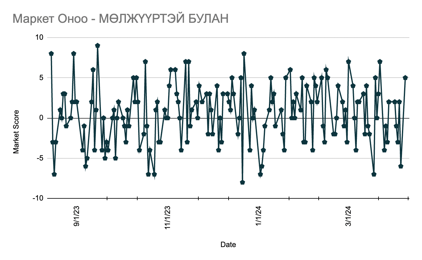 Marкет оноо: 5 / өнгөрсөн 5 дахид -6 байсан/