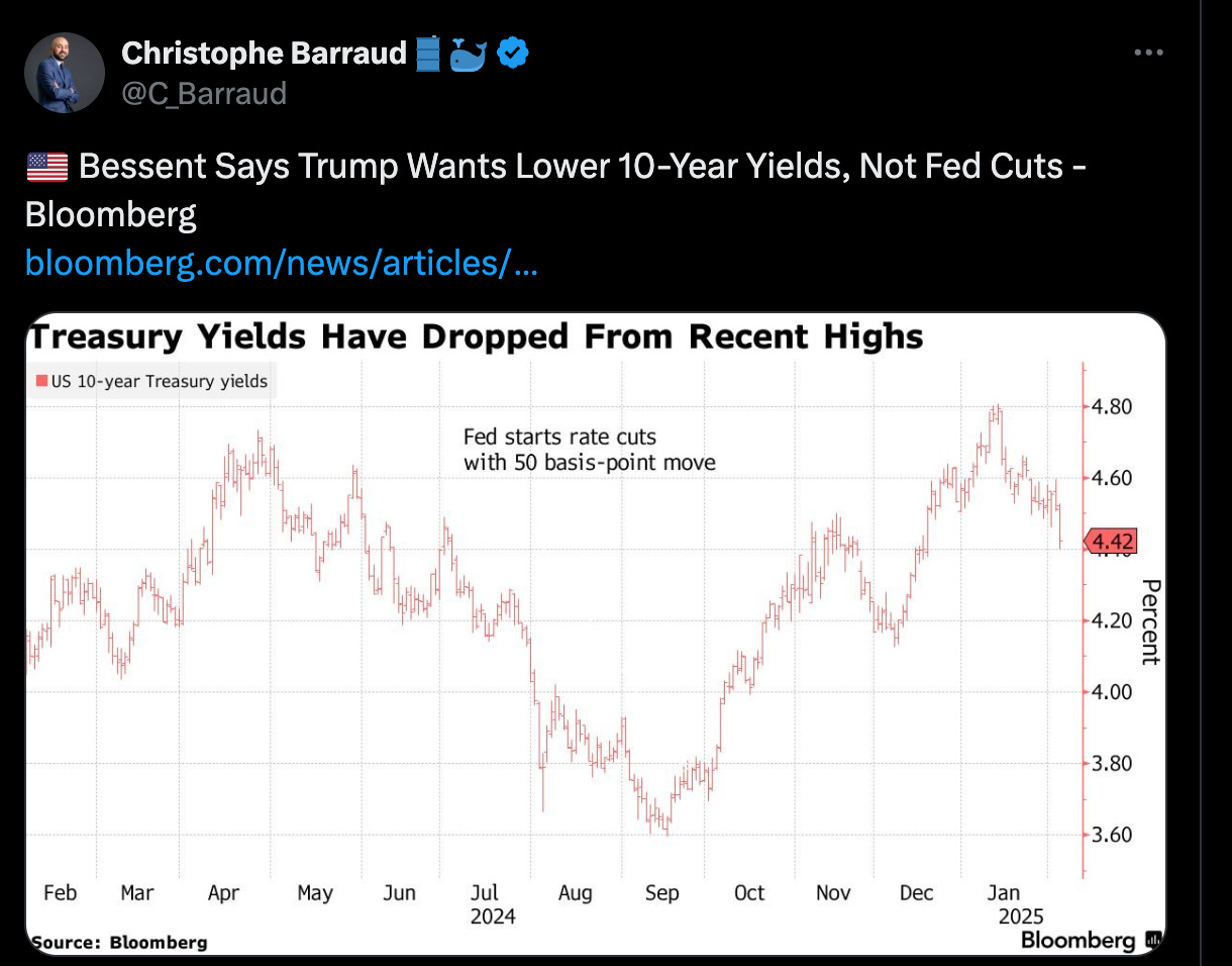 АНУ-ын Сангийн сайдаар ажиллаж байгаа Скотт Бессент 10 жилийн хүүг бууруулахад төвлөрч байгаа гэдгээ илэрхийллээ.