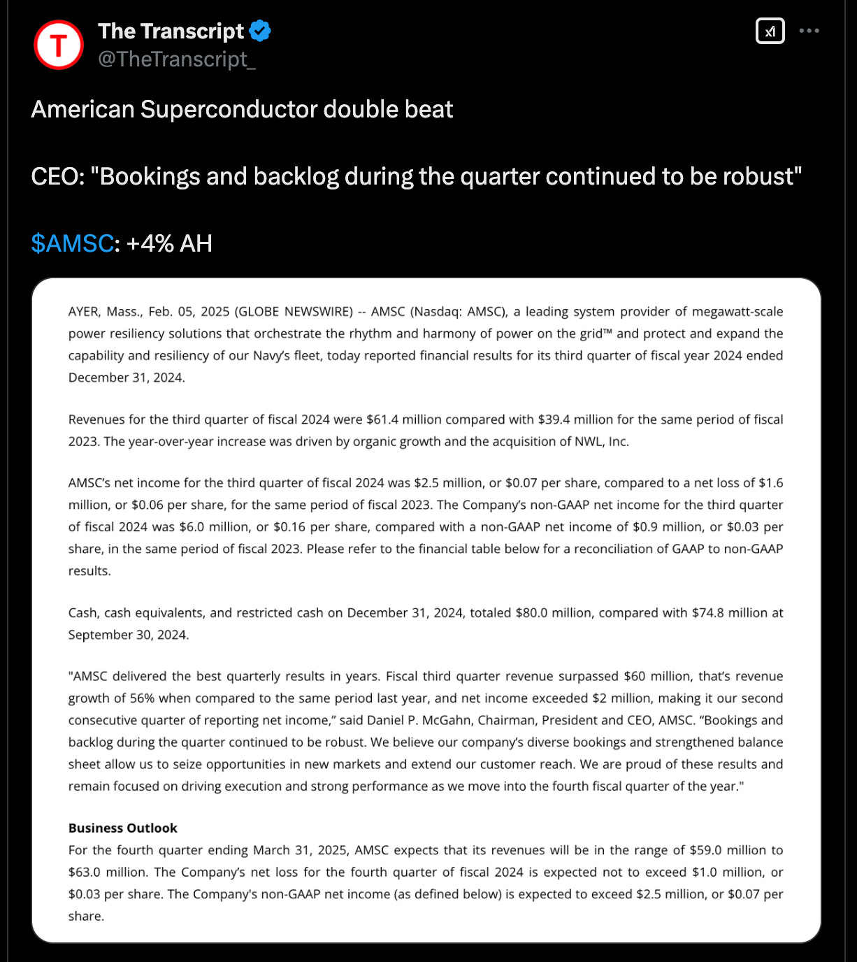 AMSC earning: