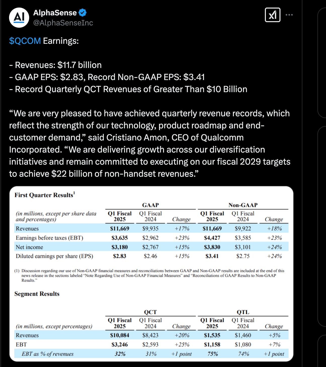 Автомашины сектороос олдог орлого 61 хувь өссөн байна. Samsung Galaxy S25 Snapdragon 8 Elite platform хэрэглэж байна. Компьютерийн салбар дахь “дизайн ялалт” (design wins) нь 80-ийг давж, 2026 он гэхэд 100-гаас давах төлөвтэй байна.