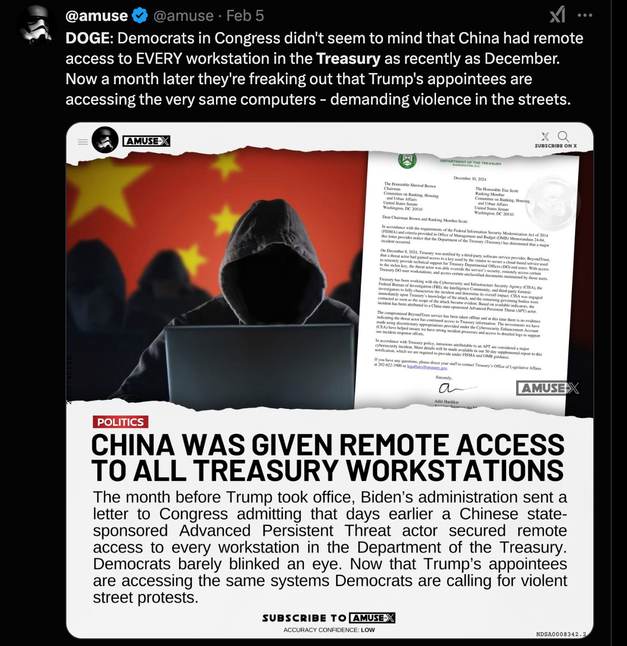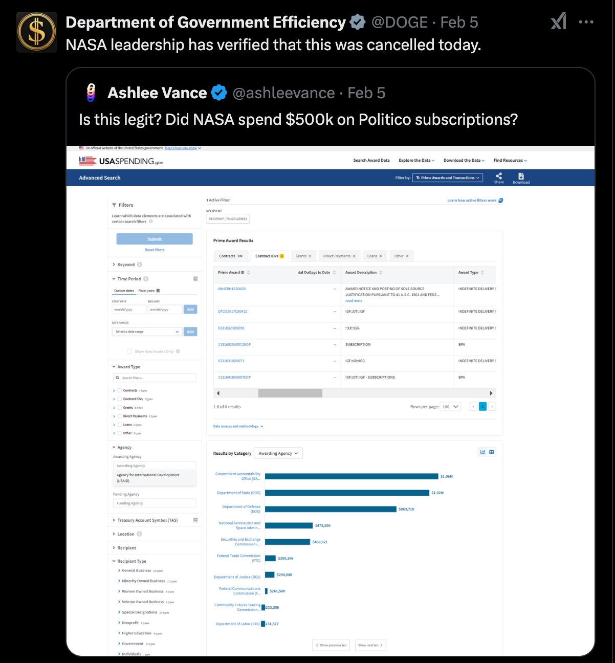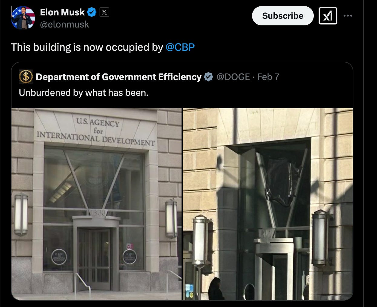 Энэ долоо шуугиулсан том мэдээ нь анх 1961 онд Ерөнхийлөгч Жон Ф. Кеннедигийн 10973 дугаар гүйцэтгэх захирамжаар байгуулагдсан АНУ-ын Олон улсын хөгжлийн агентлаг (USAID) нь хүмүүнлэгийн ажил хийх зорилготой байгуулагдаж байсан нь үнэндээ Democratic намын мөнгө угаах, мөнгө идэх, улс төрийн өрсөлдөгч рүүгээ дайралт хийхдээ ашигладаг агентлаг болсныг Doge нийтэд ил болголоо.
