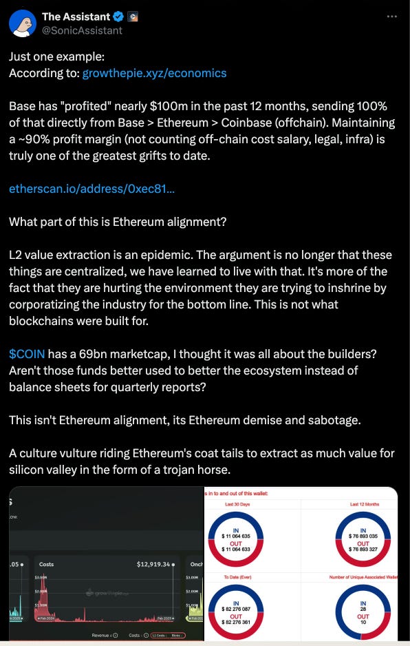 Яагаад $ETH өсөхгүй байгаад гайхах юм алга $ETH-ийг scale хийх нэрийдлээр гарч ирсэн L2-ууд ETH-ээр хийсэн ашгаа эргүүлээд зараад байгаа учраас!