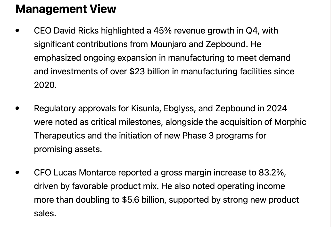 Eli Lilly earning: