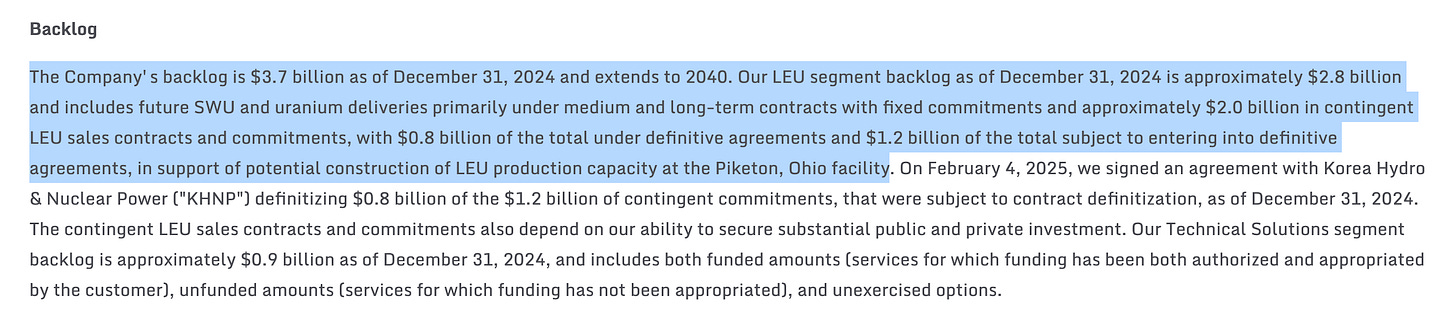 1.83 тэрбум долларын үнэлгээтэй компань 3,7 тэрбумын backlog-той байна. Гол эрсдлүүдийн нэг нь Оросоос орж ирдэг нийлүүлэлт 2025 оноос хойш тодорхойгүй болоод байгаа юм. Гэхдээ Украйны дайныг дуусгах хэлэлцээр эхэлсэнтэй холбоотойгоор Америк, Оросын харилцаа хэвийн болох найдлагатай.