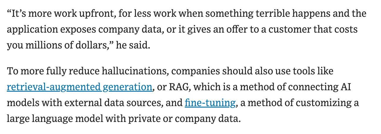 Дээрхээс гадна hallucination буюу хиймэл оюун ухааны шал хөндлөн худлаа хариулт өгөхийг бууруулахын тулд RAG хэрэглэхийг зөвлөсөн нь цаашдаа хиймэл оюун илүү ухаалаг болохын тулд илүү их дата хэрэглэх шаардлагатай болохыг санууллаа.