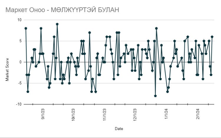 Marкет оноо: 6 / өчигдөр -3 байсан/